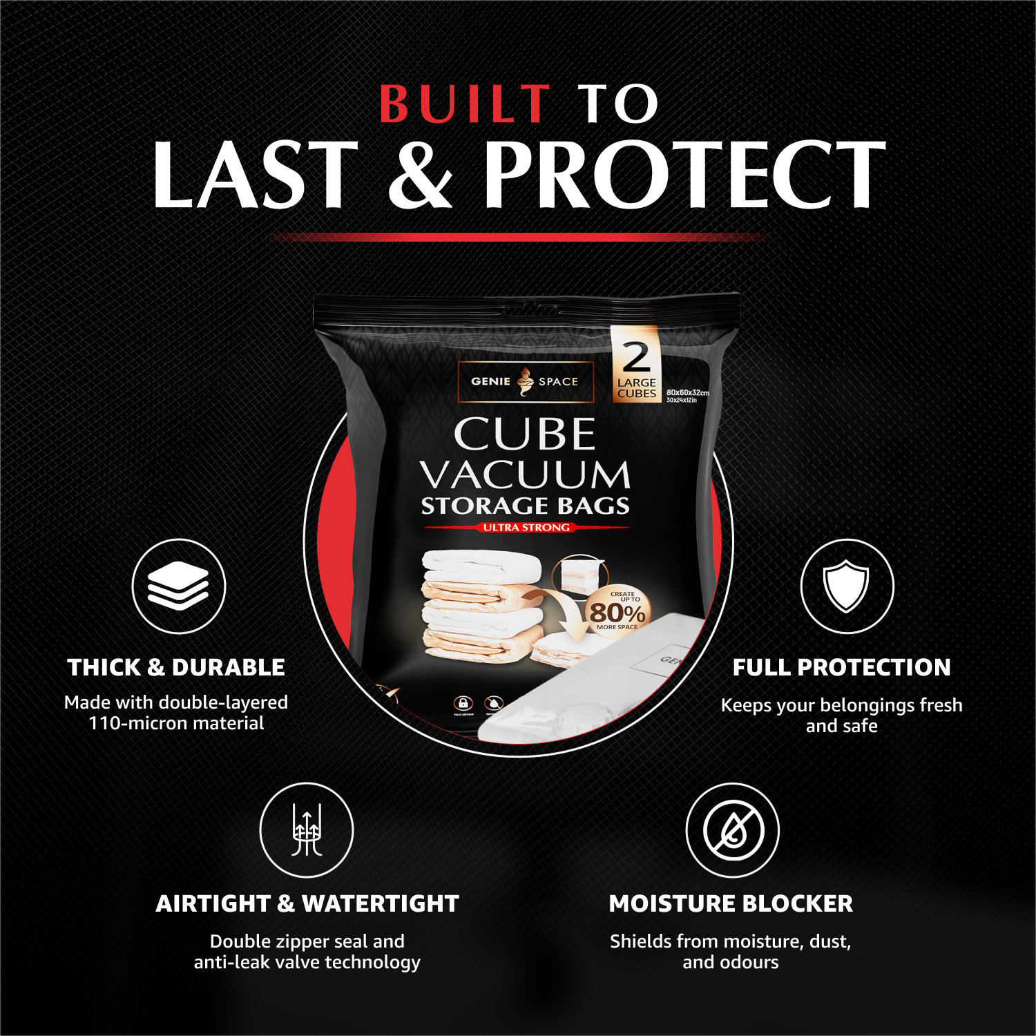 - 2 x Large Cube Vacuum Bags (80x60x32cm)