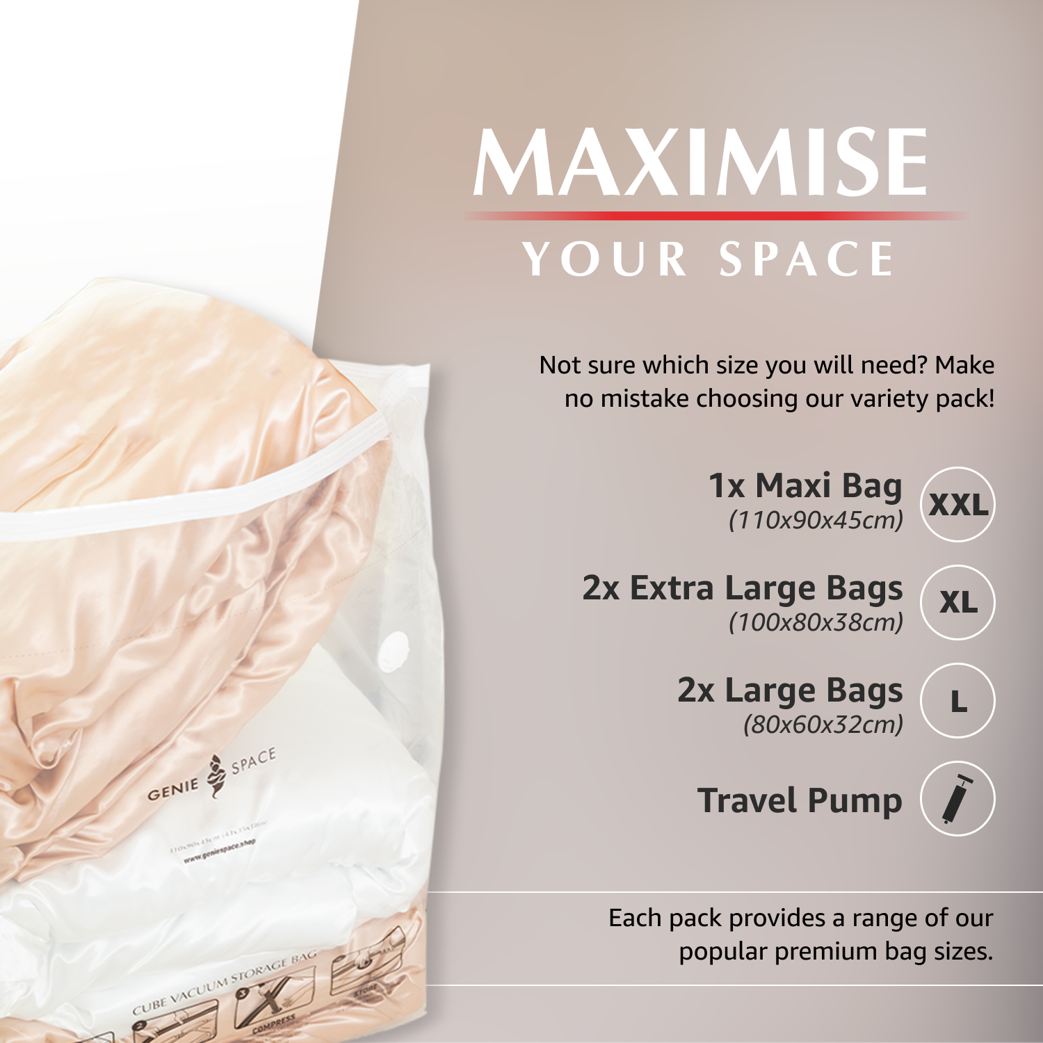- 1 x Maxi Cube Vacuum Bag (110x90x45cm)