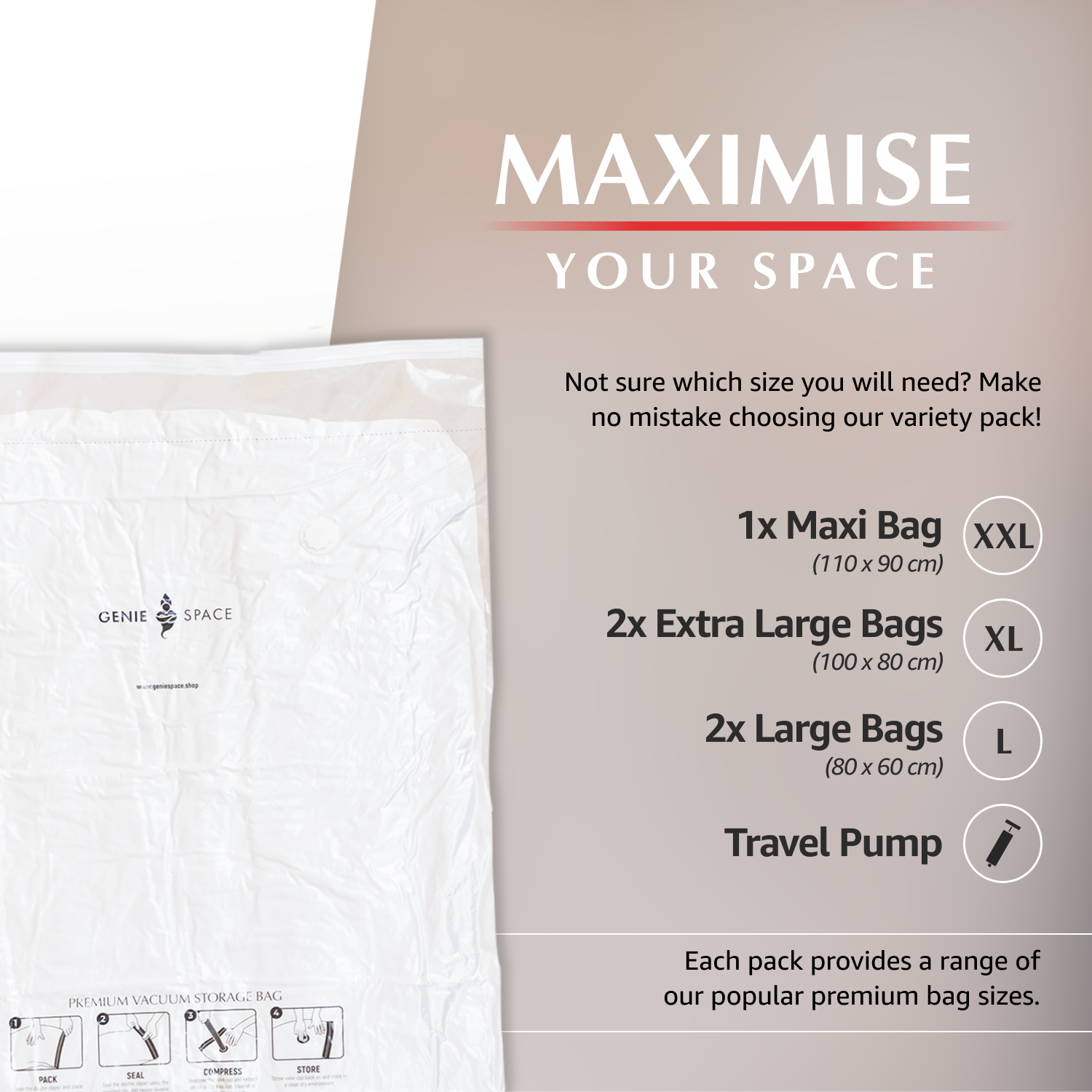 Premium Variety Bags 5 Pack - (1MX+2XL+2L) inc pump