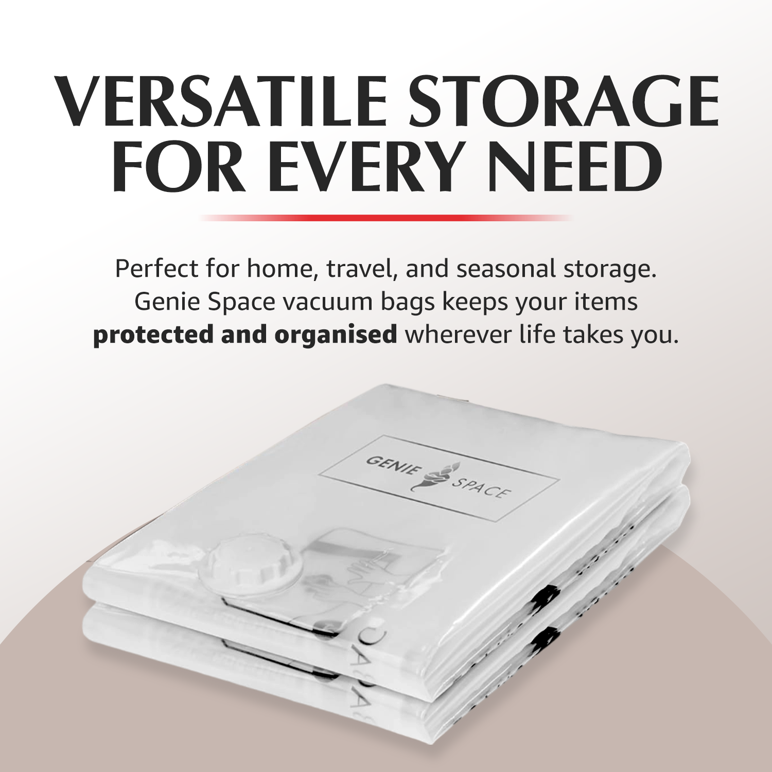 Our versatile MEDIUM Premium Vacuum Bags are great for compressing a range of items into more than half of their original size – perfect for tops, jumpers, dresses, and children’s clothes. Their size makes them easy to handle for use around the house or while traveling.