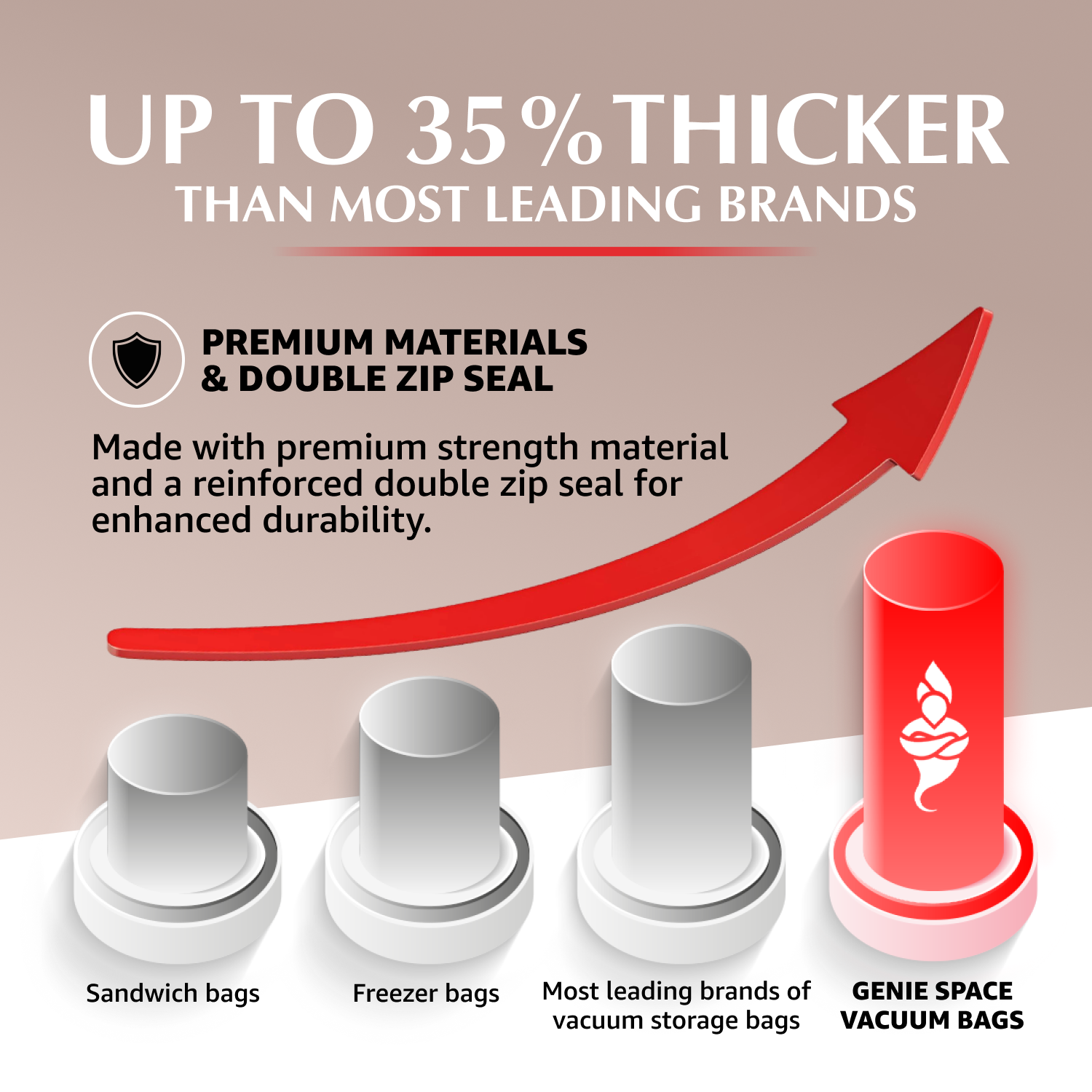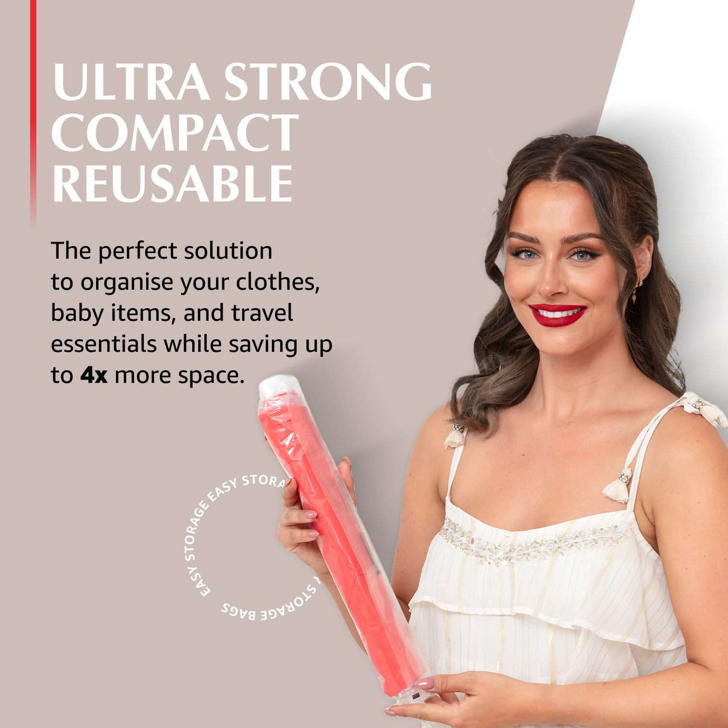 These bags are ultra strong as they are made with a durable and flexible double-layered material for ultra strength and reliability. They are also designed with a leak free self-sealing valve to easily release air and compress the bags when they are rolled by hand.